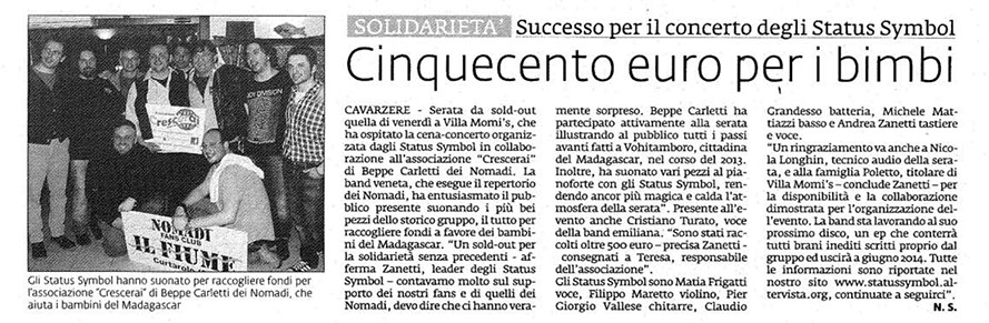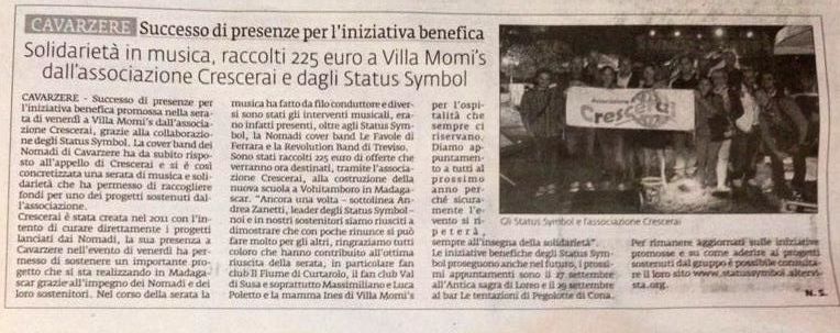 In occasione della presentazione del nostro singolo Voglio Esistere, sono stati raccolti presso Villa Momi's a Cavarzere (VE) ben 346,00€ da destinare all'acquisto di materiale didattico per la scuola di Vohitamboro, in Madagascar.
