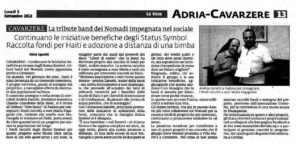 PURTROPPO LA SCARSA AFFLUENZA NON CI HA PERMESSO DI RACCOGLIERE CIFRE IMPORTANTI. TUTTE LE OFFERTE, (€43,00), SONO STATE CONSEGNATE A SUOR MARIA FOGAGNOLO CHE PROVVEDERà AD INVIARLE IN HAITI. LA COSA POSITIVA è CHE PROPRIO QUELLA SERA, UNA COPPIA TREVIGIANA VENUTA PER PARTECIPARE AL CONCERTO, HA ADOTTATO A DISTANZA UN BAMBINO DI HAITI. QUESTO EQUIVALE AD AVER INNANZITUTTO DATO UNA Possibilità DI VITA AD UN POVERO BAMBINO, E IN SECONDO LUOGO DARE L'opportunità DI ISTRUZIONE AD UN RAGAZZO.