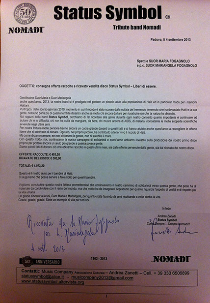 Attraverso la vendita del nostro disco Liberi di Essere, finora abbiamo raccolto ben €580,00, che porteranno un po' d'aiuto ai bambini di Haiti. Grazie di cuore!