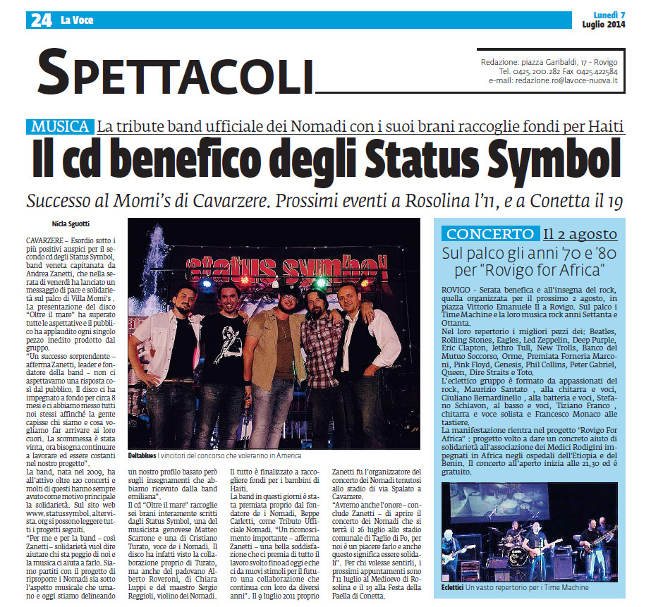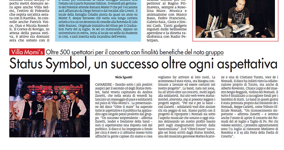 A SEGUITO DEL CONCERTO DEL 9 LUGLIO 2011 A CAVARZERE (VE), SONO STATI DONATI ALLE COOP. EMMANUEL DI CAVARZERE E COOP. MAGNOLIA DI PIOVE DI SACCO € 500,00 CAD., PER UN TOTALE QUINDI DI € 1.000,00. GRAZIE A TUTTI COLORO CHE HANNO PARTECIPATO ALLA MANIFESTAZIONE.