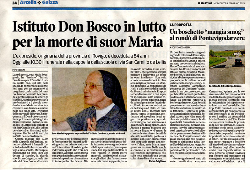 SALUTIAMO LA NS. SUOR MARIA FOGAGNOLO.